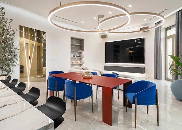 Luxury Penthouse In Downtown Appartement Boedapest ligt vrij dicht bij de Elisabethbrug en verwelkomt gasten met een sauna. Het appartement is in de 05. Belváros - Lipótváros wijk gesitueerd en biedt toegang tot de Váci utca, die binnen 9 minuten lopen vandaan ligt.